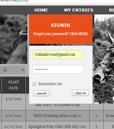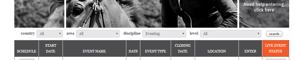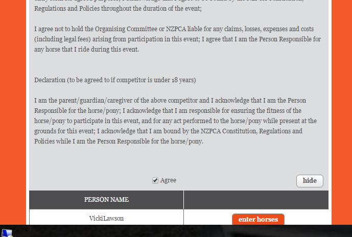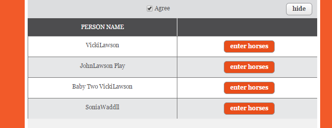 Click ENTER HORSES beside the name of the rider you are wanting to enter