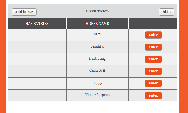 You will then see a list of your horses. Click ENTER beside the horse you wish to enter.