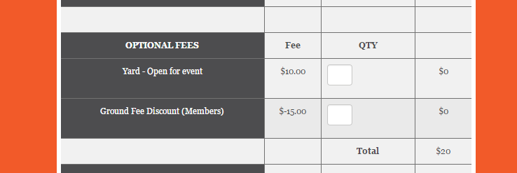 You can also choose any optional fees such as yarding and camping.