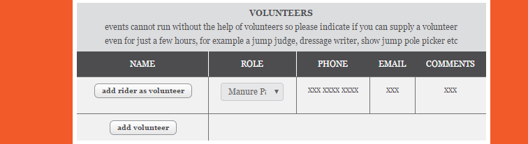 You can now enter the names of any Volunteers who can assist at the event.