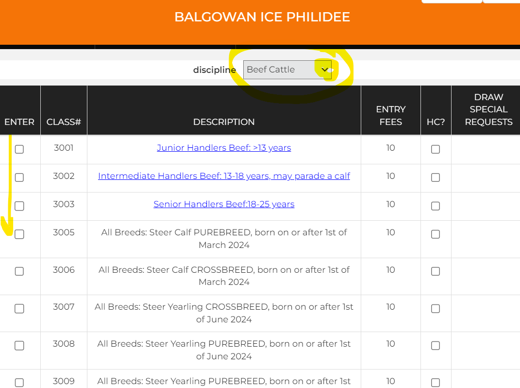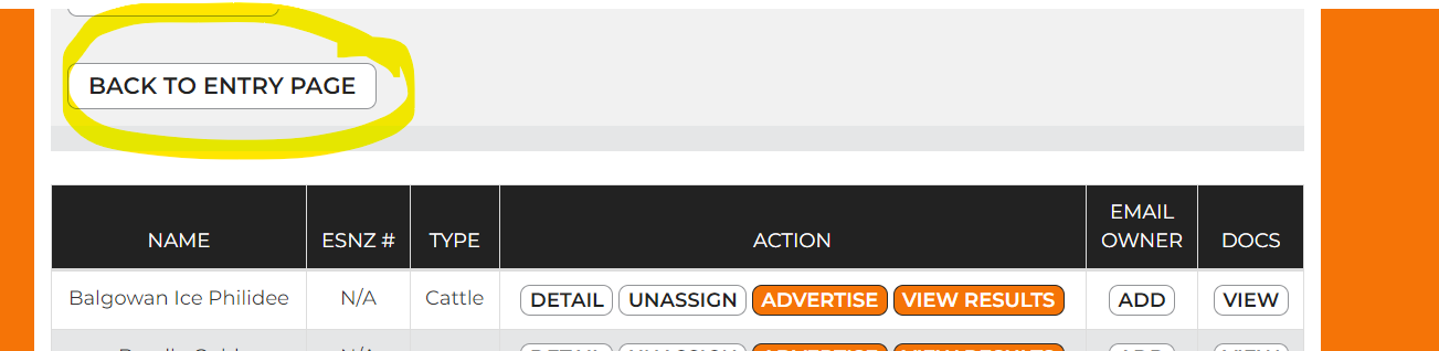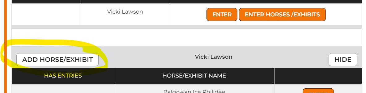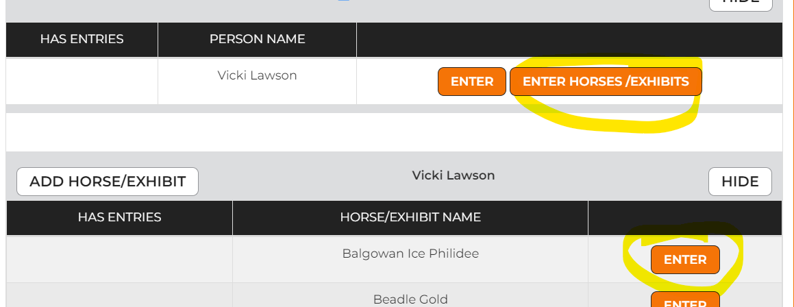 Now click Enter Horses/Exhibits and then Enter beside the animal you are wanting to enter