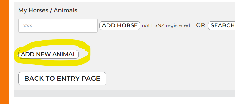 If you haven’t entered the animal using EvoEvents before you will need to add the animal to your account. Click Add Horse/Exhibit