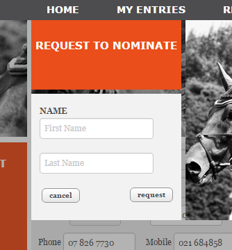Click REQUEST TO NOMINATE button and yo will get a pop up asking for the name of the person. Put in the parent name. This will only be successful if the person you are nominating has an Evo Events account. It is not instantaneous and may take 24 hours to be processed.